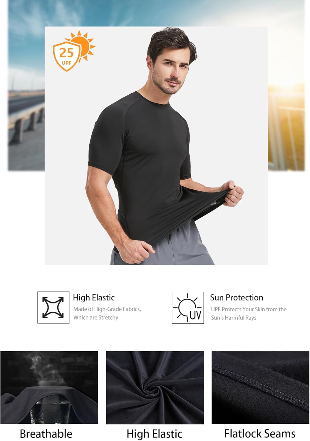 5 Pack Men’s Compression Shirts Short Sleeve Cool Dry Sports Athletic Workout Base Layer Undershirt T-Shirt Tops/ Mens T-Shirt