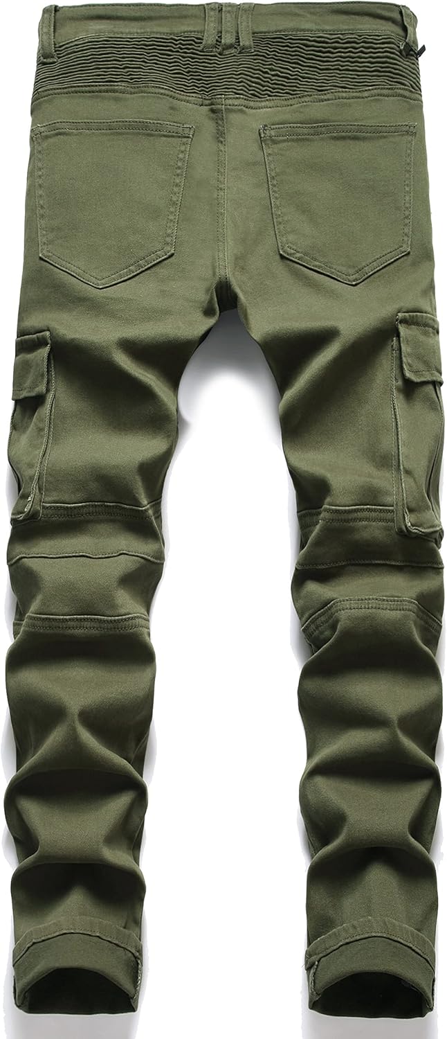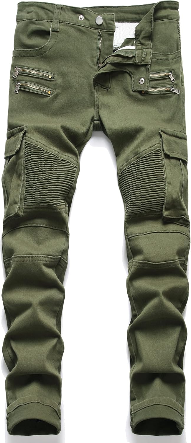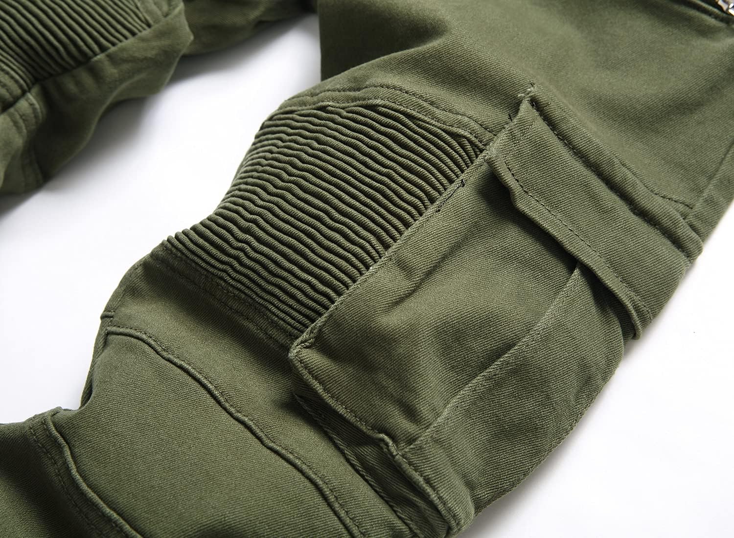 AITITIA Men’s Biker Zipper Deco Washed Straight Fit Jeans/ Jeans