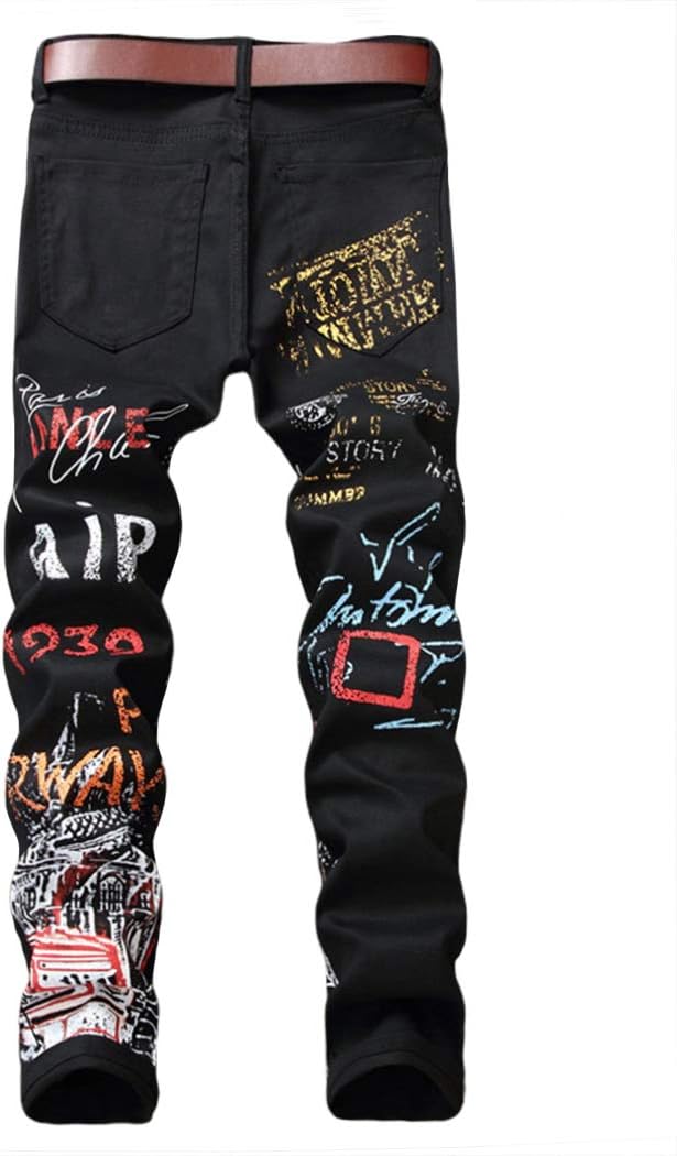 Baylvn Men’s Casual Printed Slim Fit Jeans Skinny Denim Pants/ Jeans