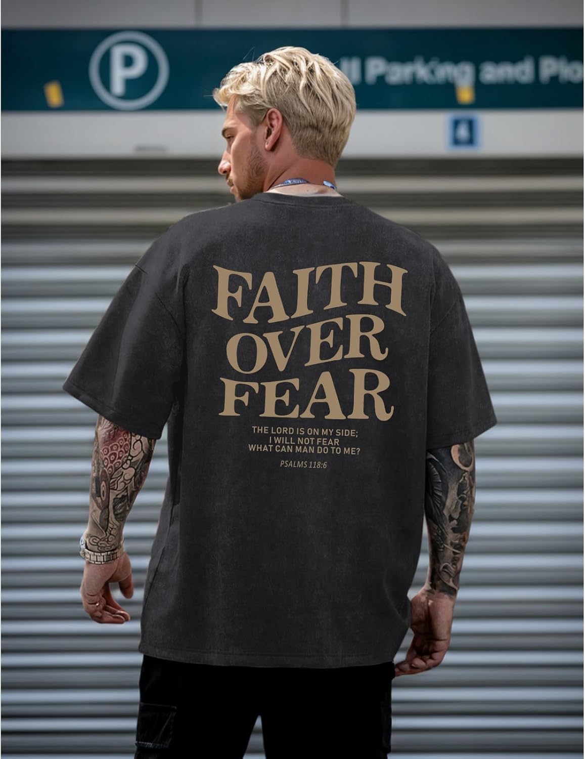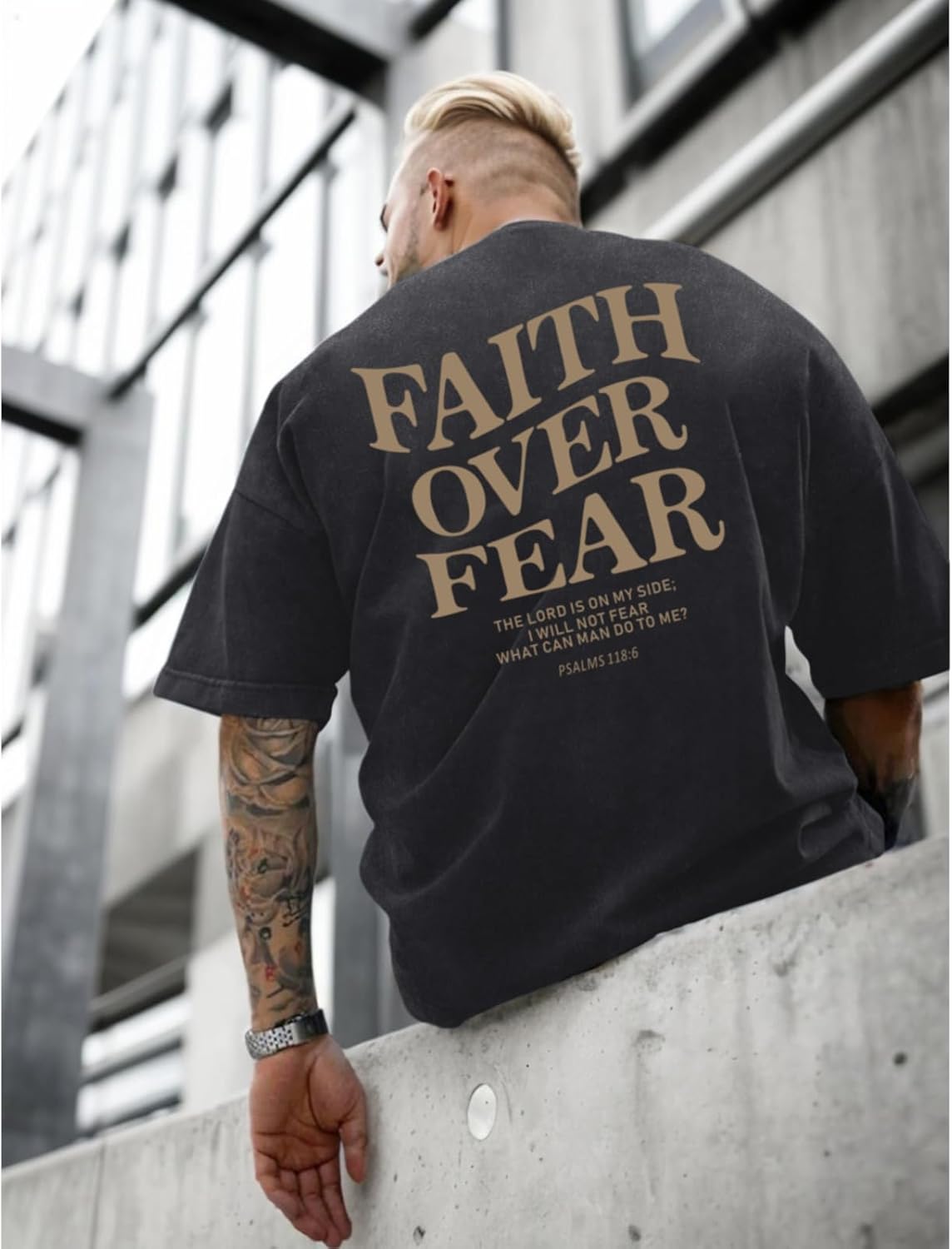 Christian Faith Over Fear Shirt for Men Jesus Religious Shirts Oversized Graphic Tees Acid Wash God T-Shirt/ Mens T-Shirt