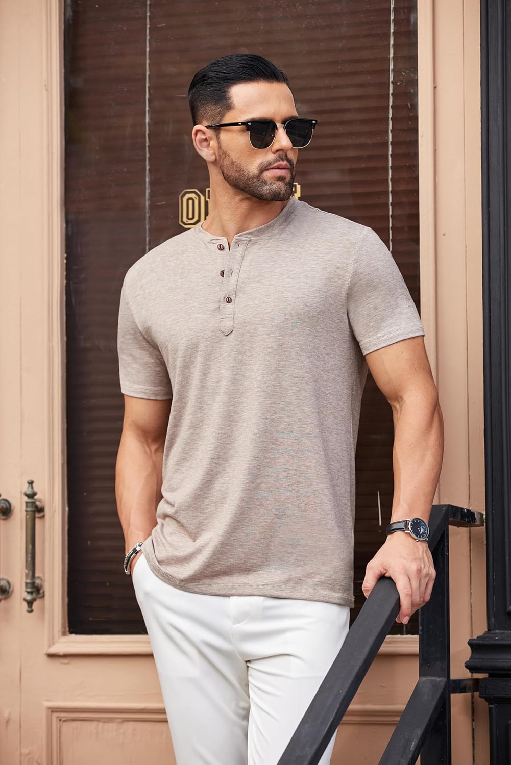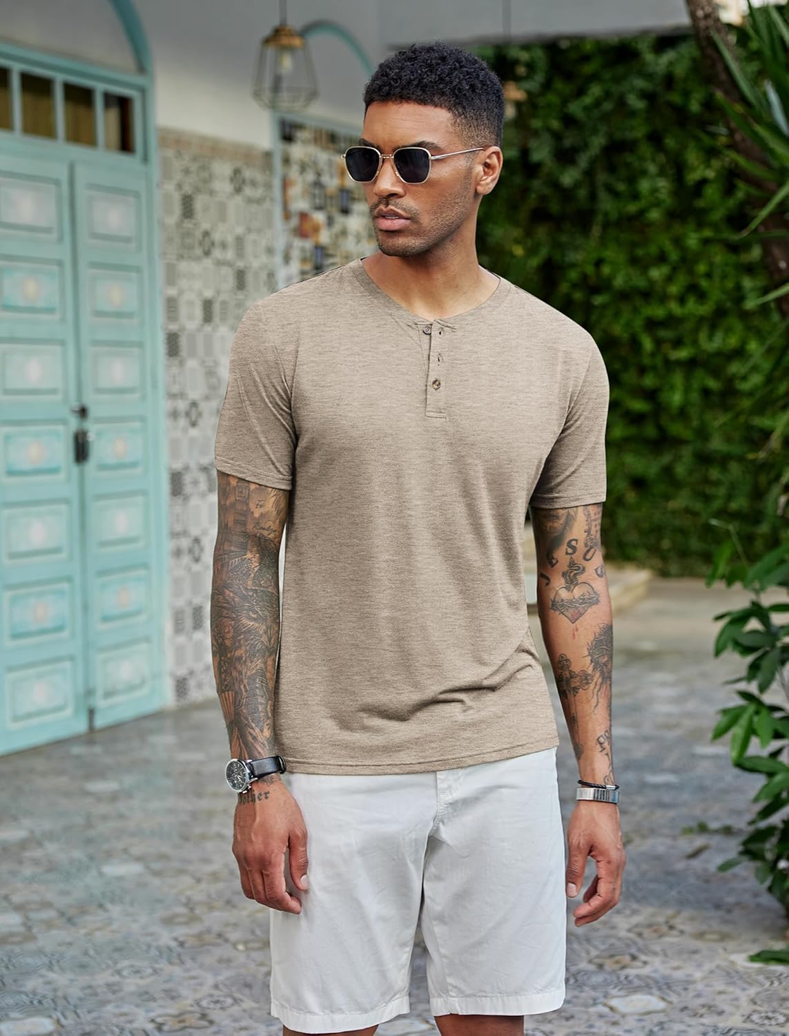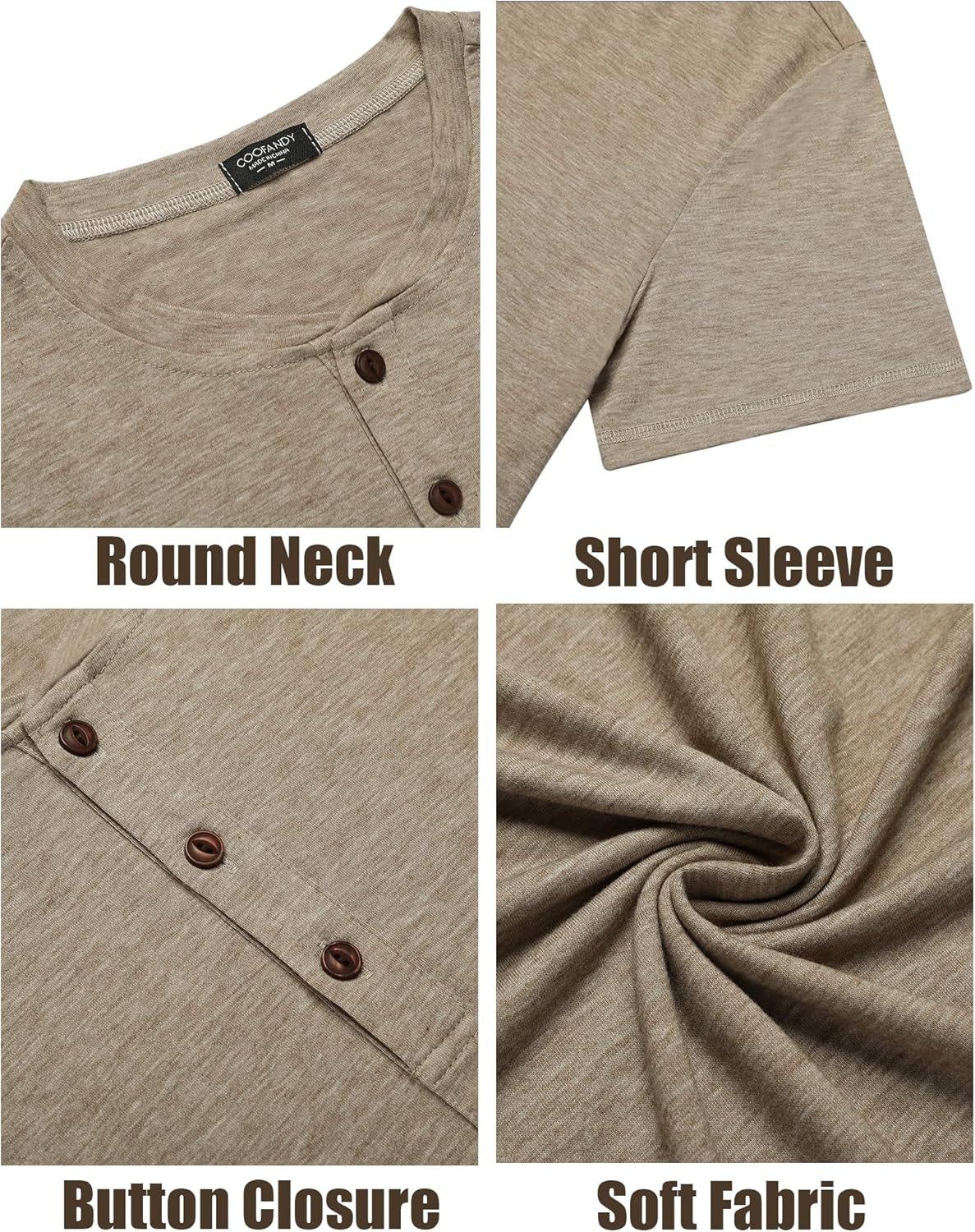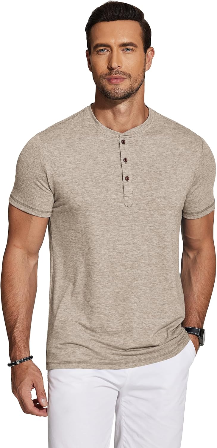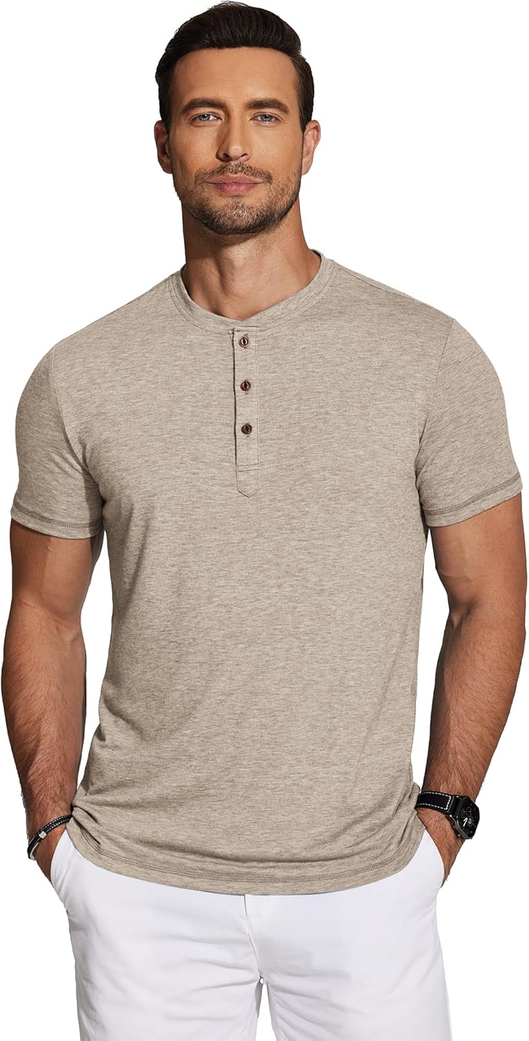 COOFANDY Men’s Henley Shirts Short Sleeve Casual Basic Tee Summer Button Henley Soild T Shirts/ Mens T-Shirt