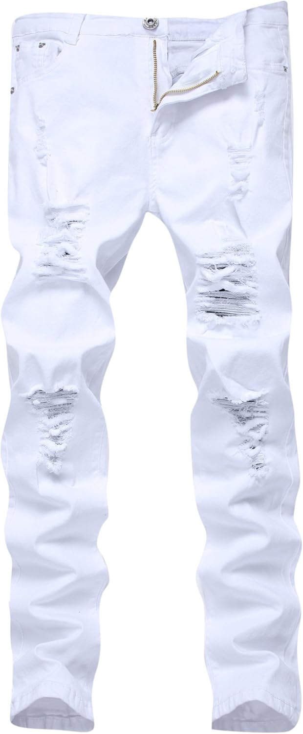 FREDD MARSHALL Men’s Skinny Slim Fit Ripped Distressed Stretch Jeans Pants/ Jeans