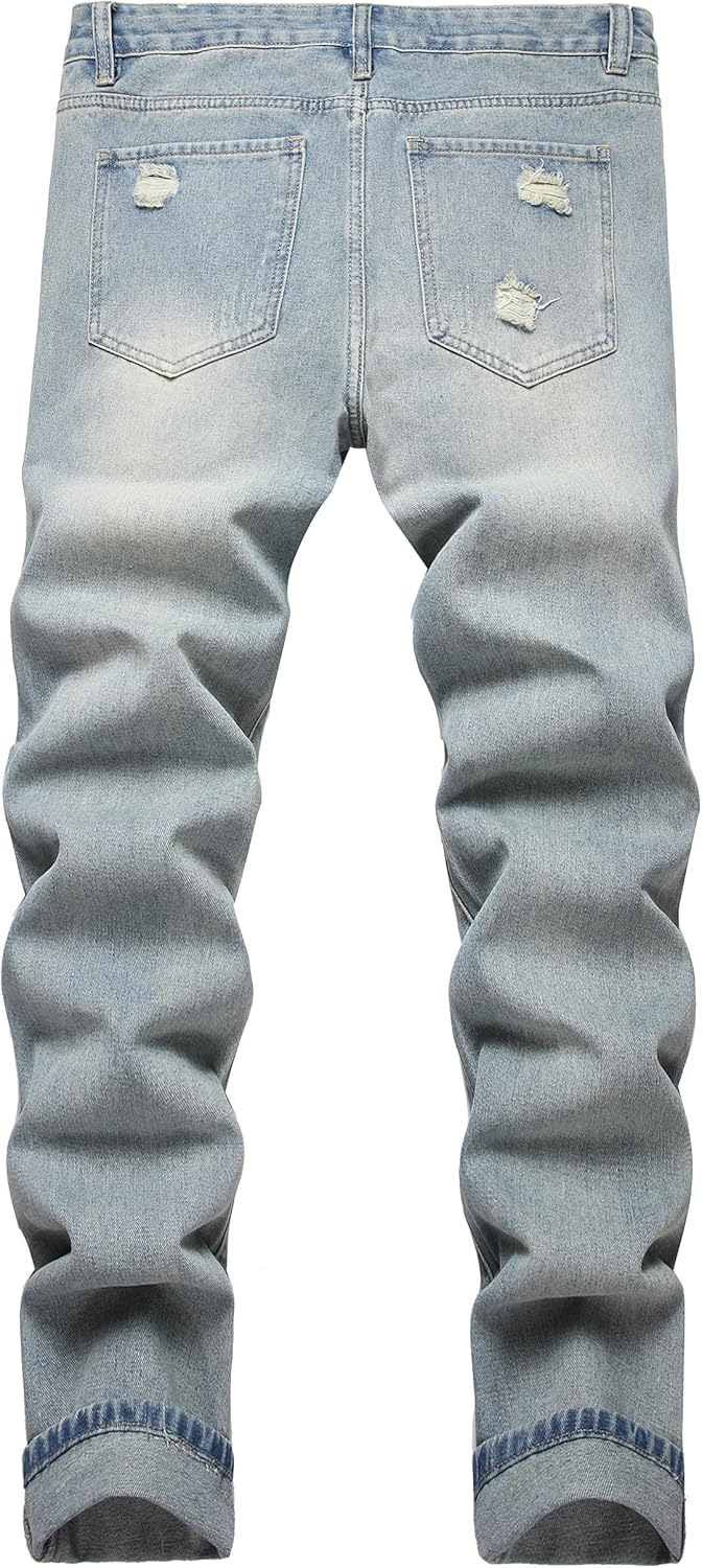 FREDD MARSHALL Ripped Jeans Men,Jeans for Mens,Slim Fit Distressed Straight Leg Fashion Washed Pants/ Jeans