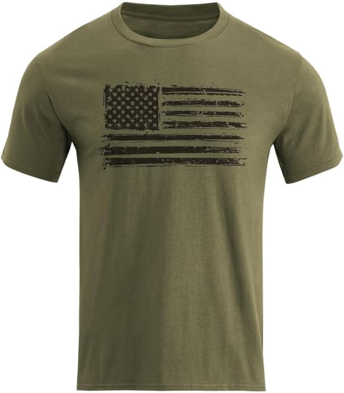 H HYFOL Men’s Graphic T-Shirts USA Flag 100% Cotton Short Sleeve American Patriotic Crewneck Casual Regular Tee Shirts/ Mens T-Shirt