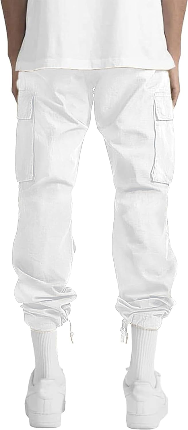 HUNGSON Mens Cargo Pants Drawstring Casual Hiking Pants Joggers Athletic Trousers Cotton Loose Straight Sweatpants for Men/ Jeans