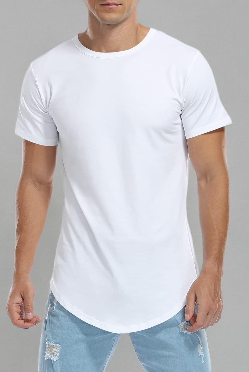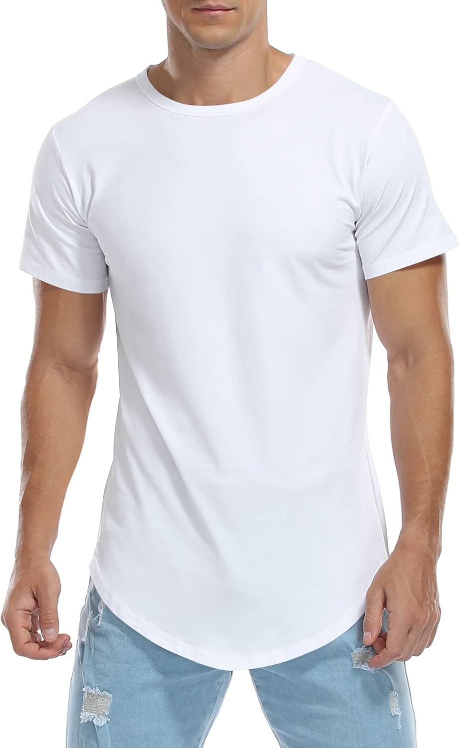 KESIHAN Men’s Hip Hop Wave Round Hem T-Shirt Round Neck Cotton Casual Fashion Top/ Mens T-Shirt