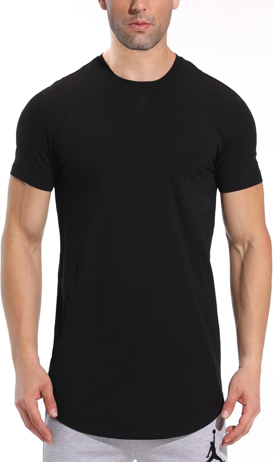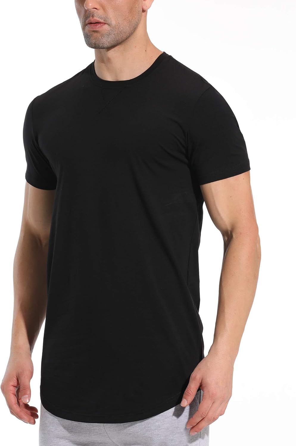 LETAOTAO Mens Hipster Longline T-Shirt Drop Cut Scallop Long Tail Slim Fit Bodybuilding Gym Muscle Workout Tee/ Mens T-Shirt