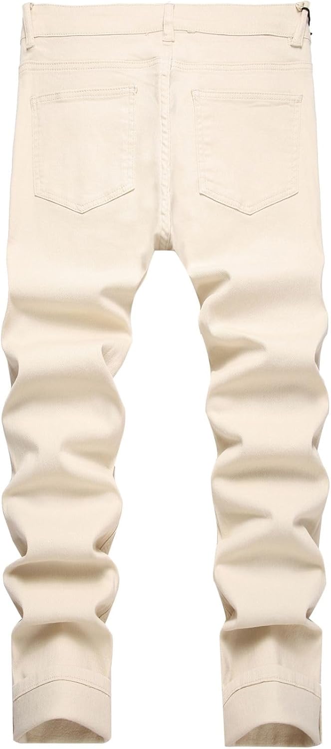 QIMYUM Mens Ripped Jeans, Distressed Destroyed Slim Fit Straight Leg Denim Pants/ Jeans