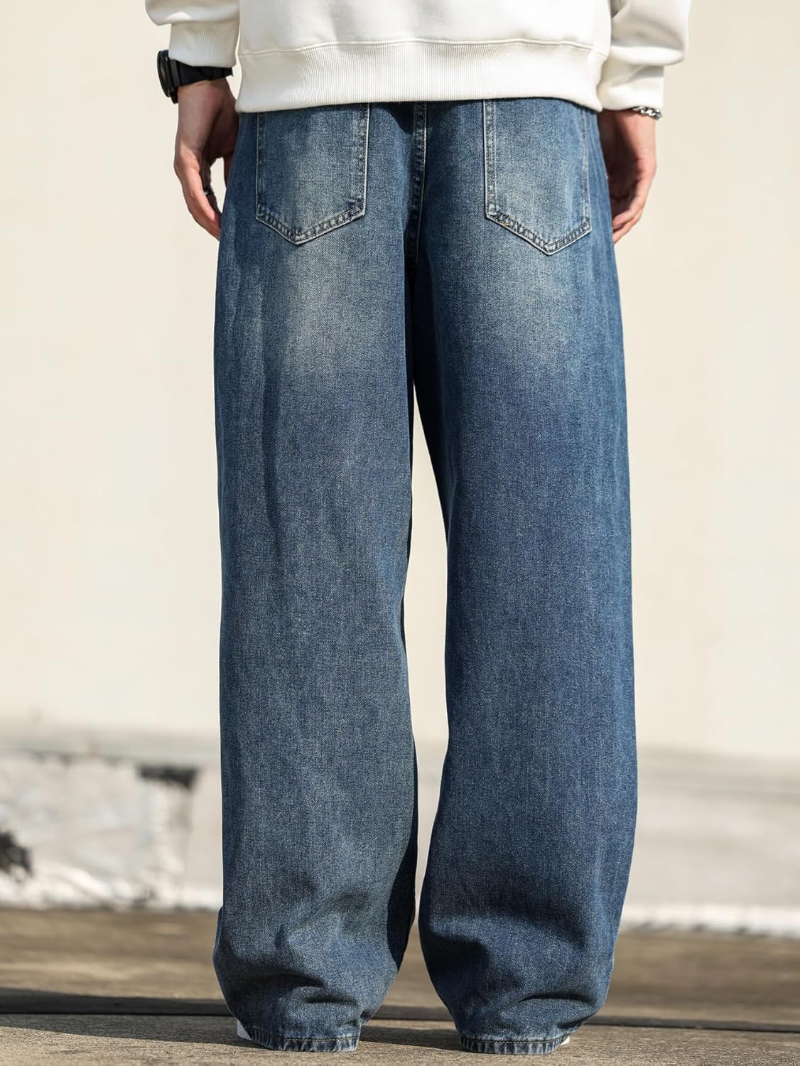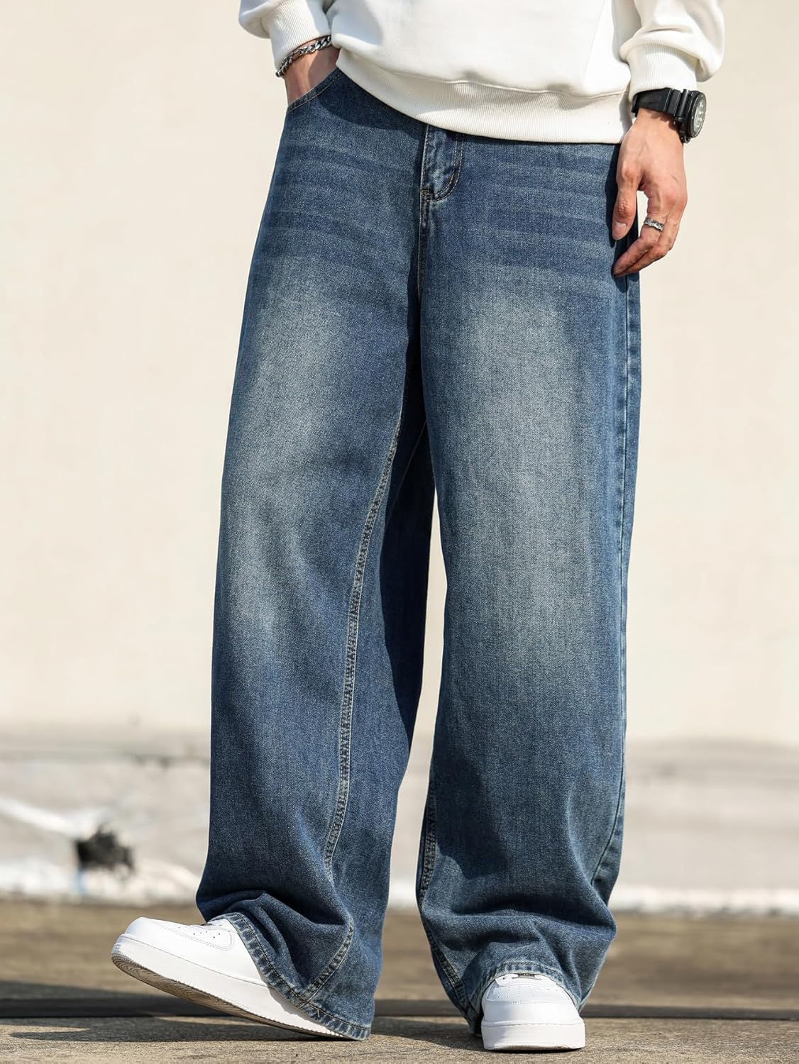 Men’s Baggy Hip Hop Jeans Wide Leg Skater Denim Pants Casual Loose Fit Long Trousers Streetwear/ Jeans