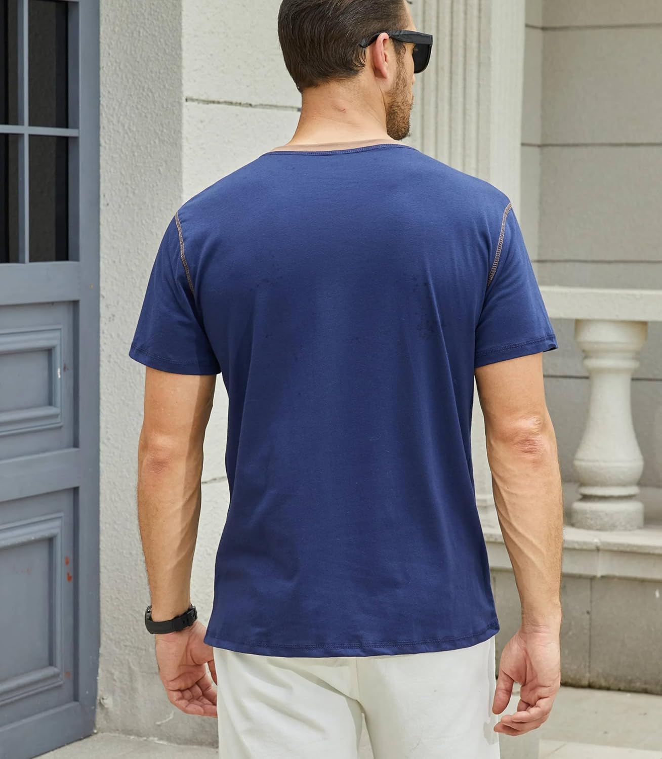 Men’s Casual Henley Shirts Classic Button Cotton Short Sleeve T-Shirt Summer Basic Solid Lightweight Tees Tops/ Mens T-Shirt
