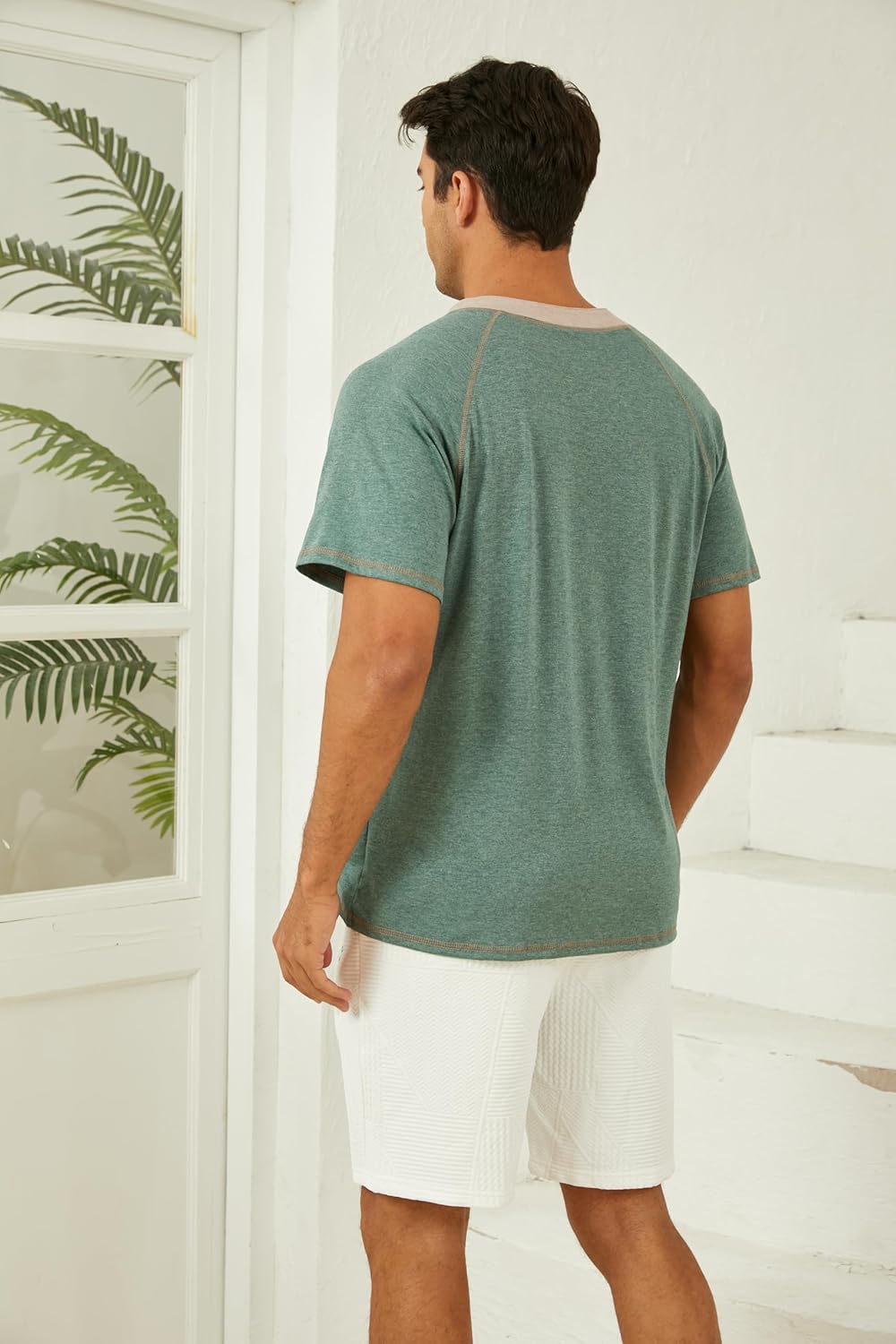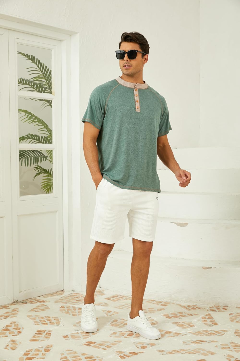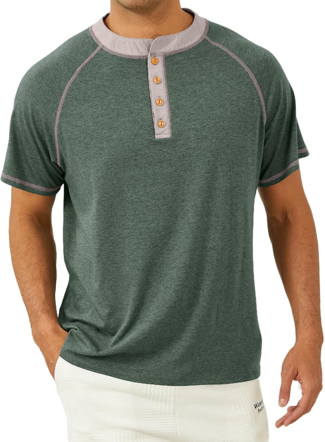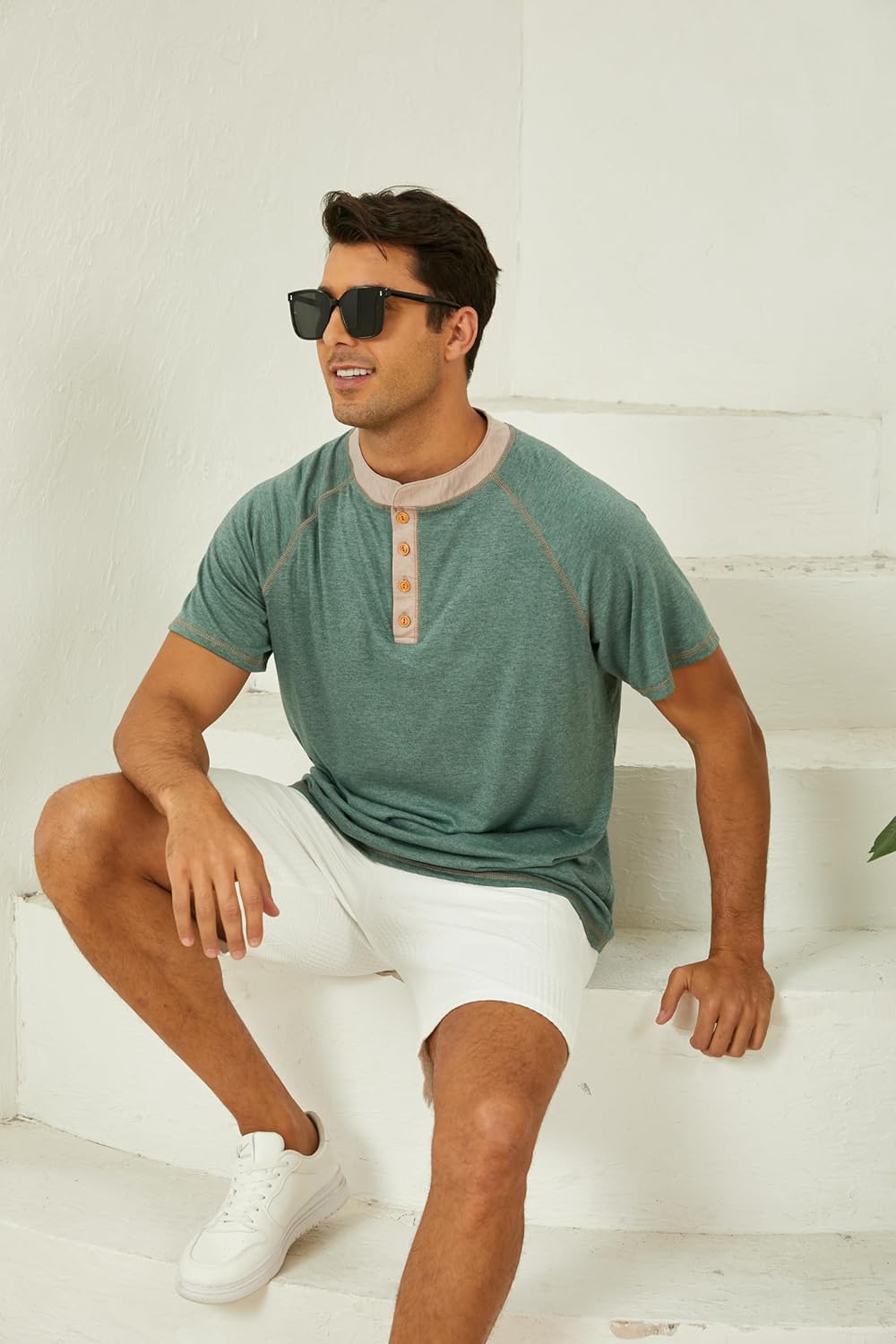 Mens Short Sleeve Henley Shirts Casual Button T-Shirts Basic Cotton Tee Shirts Summer Lightweight Tee Tops/ Mens T-Shirt