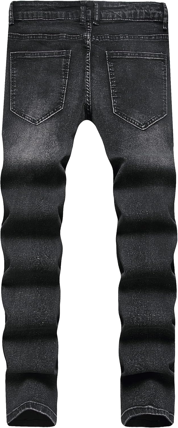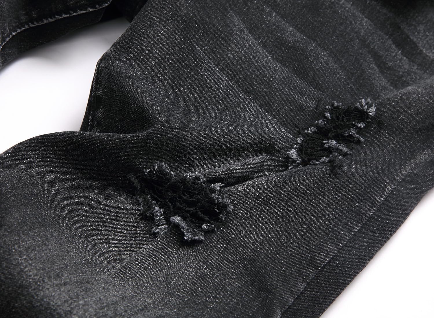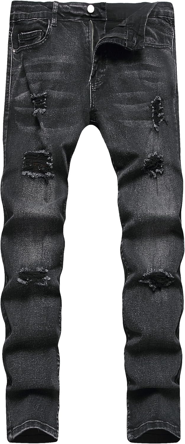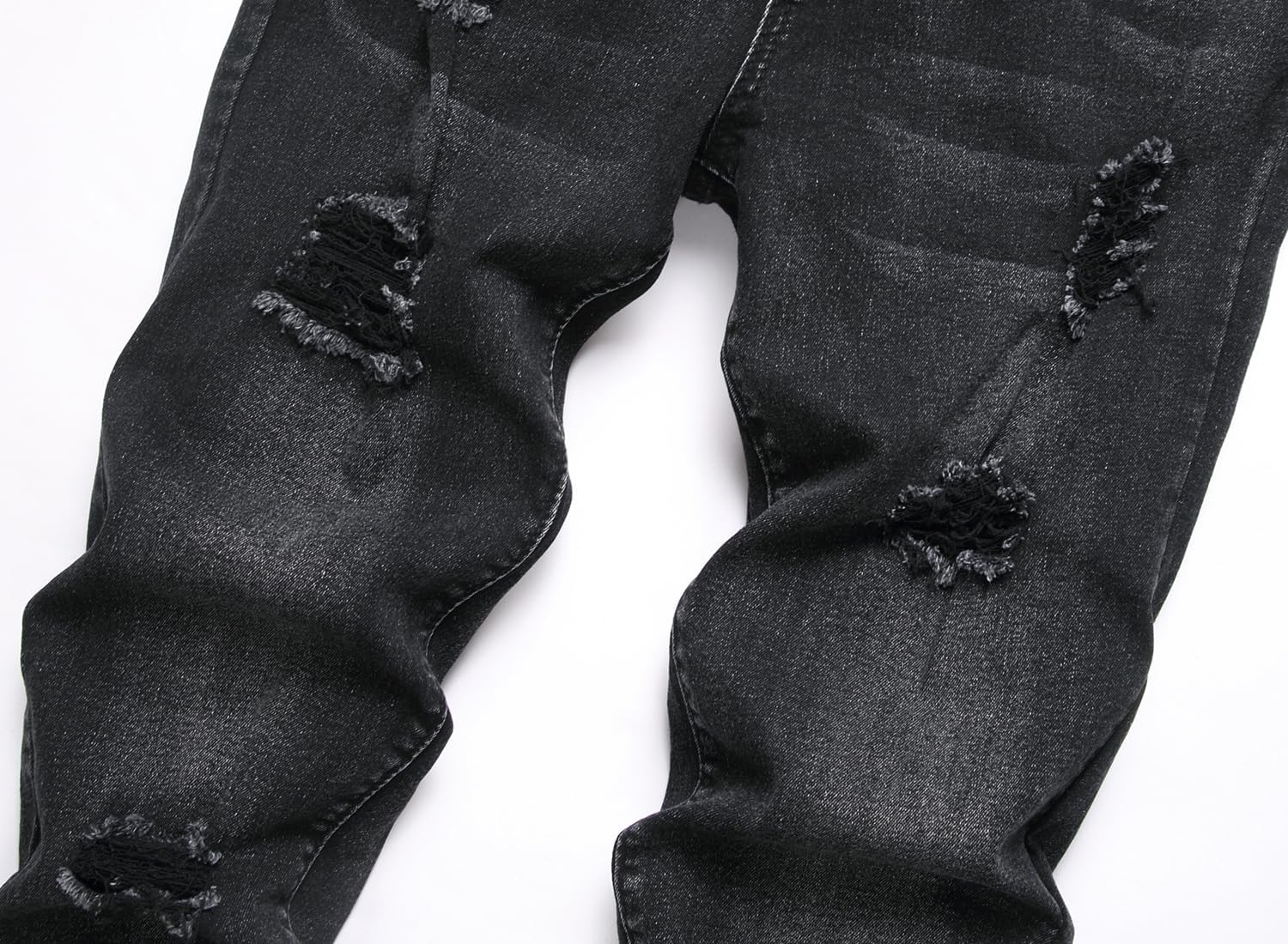 Men’s Slim Fit Stretch Jeans Ripped Distressed Straight Leg Fashion Black Pants/ Jeans
