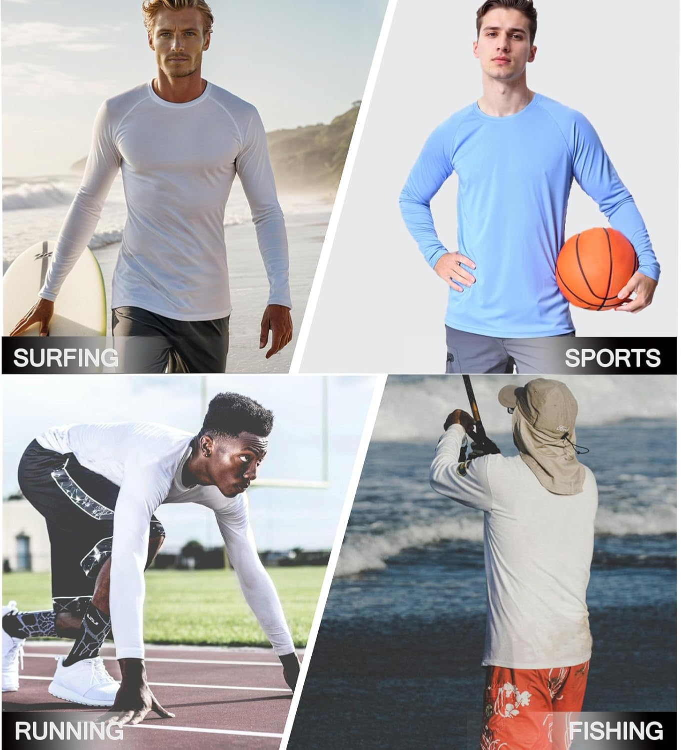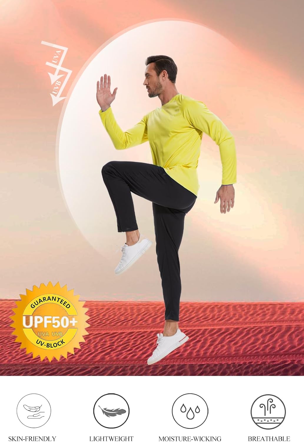 NEYOUQE Men’s Sun Protection UPF 50+ Shirts Long Sleeve Running Workout Athletic Gym Shirt UV Swim Fish Rash Guard Hiking/ Mens T-Shirt