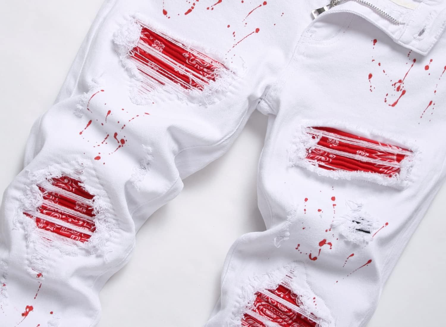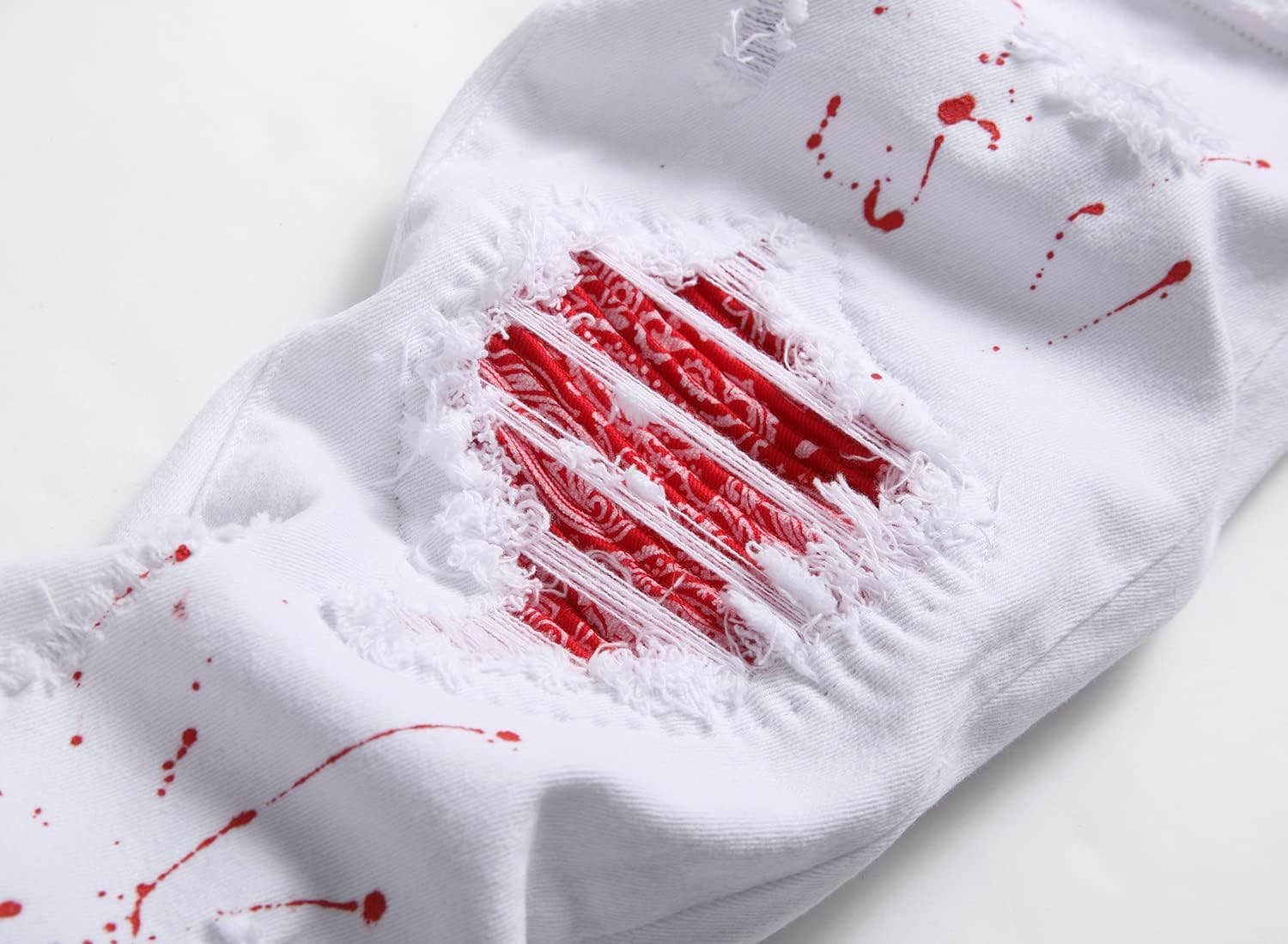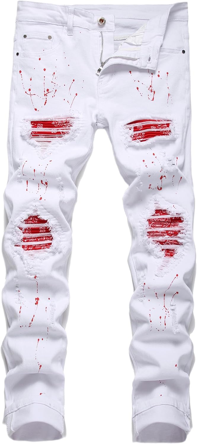 OIIIO Men’s Patch Ripped Stretch Regular Fit Jean/ Jeans
