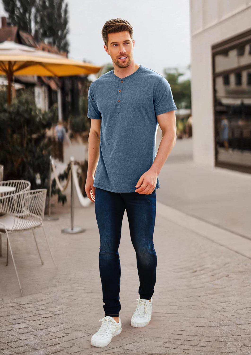 COOFANDY Mens Cotton Henley T-Shirts Short Sleeve Button Casual Basic Tees Work Shirts with Split Side/ Mens T-Shirt