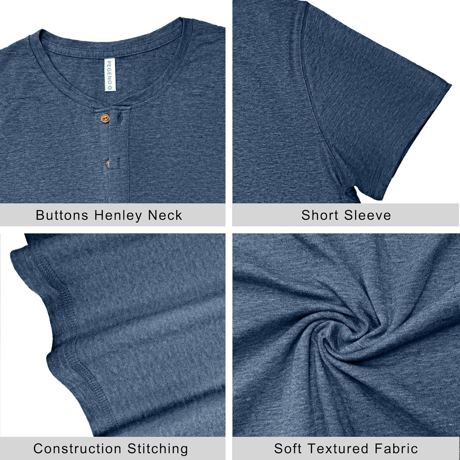 HomeMens T-Shirt PEGENO Men’s Fashion Casual Front Placket Short Sleeve Henley T-Shirts Cotton Shirts/ Mens T-Shirt
