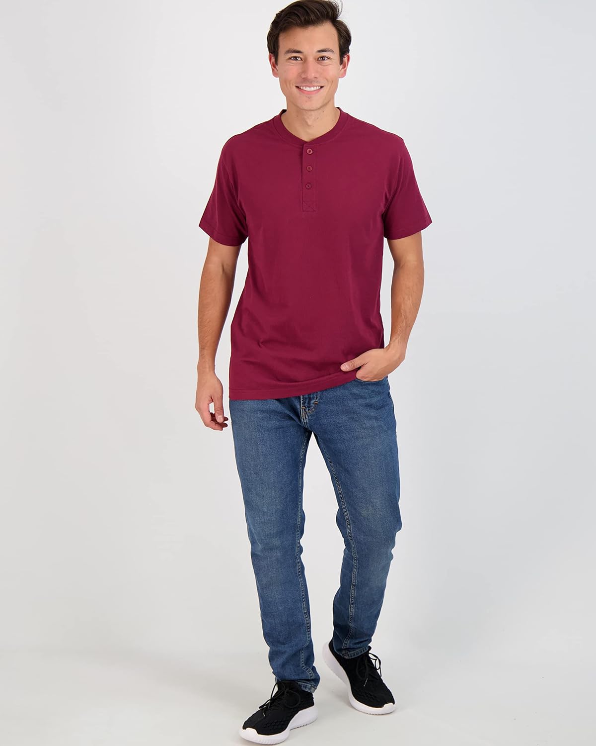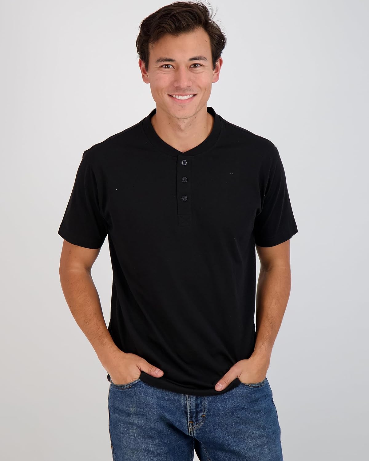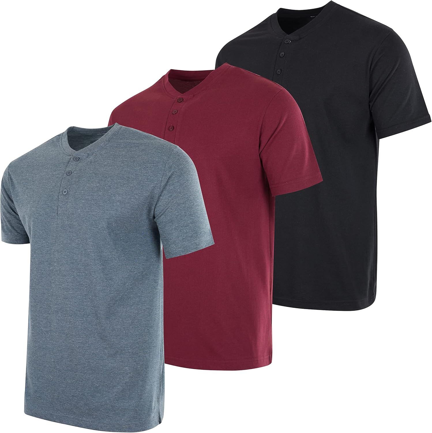Real Essentials 3 Pack: Men’s Cotton Short & Long Sleeve Henley T-Shirt Performance Activewear (Available in Big & Tall)/ Mens T-Shirt