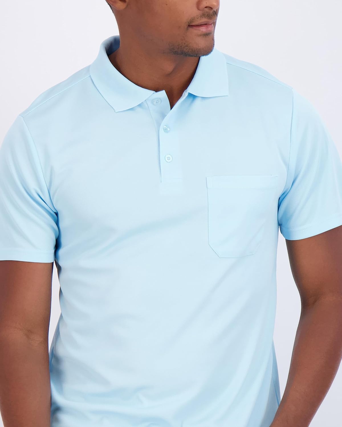 Real Essentials 3 Pack: Mens Short Sleeve Dry-Fit Collared Polo Shirt with Pocket – Active Casual (Available Big & Tall)/ Mens T-Shirt