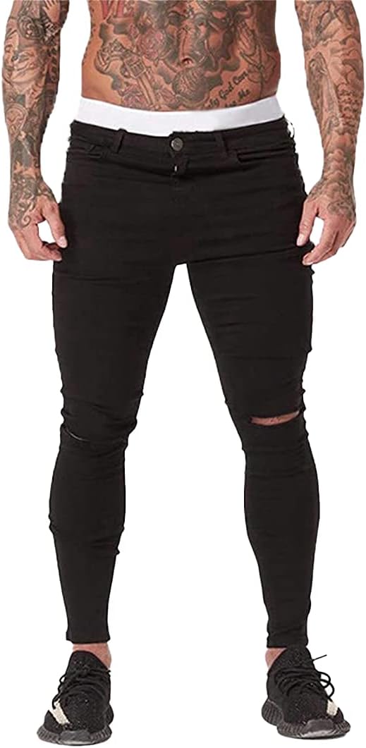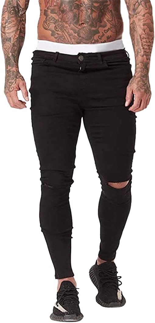 Ripped Skinny Jeans for Men Super Stretchy Distressed Slim Fit Fashionable Pants/ Jeans
