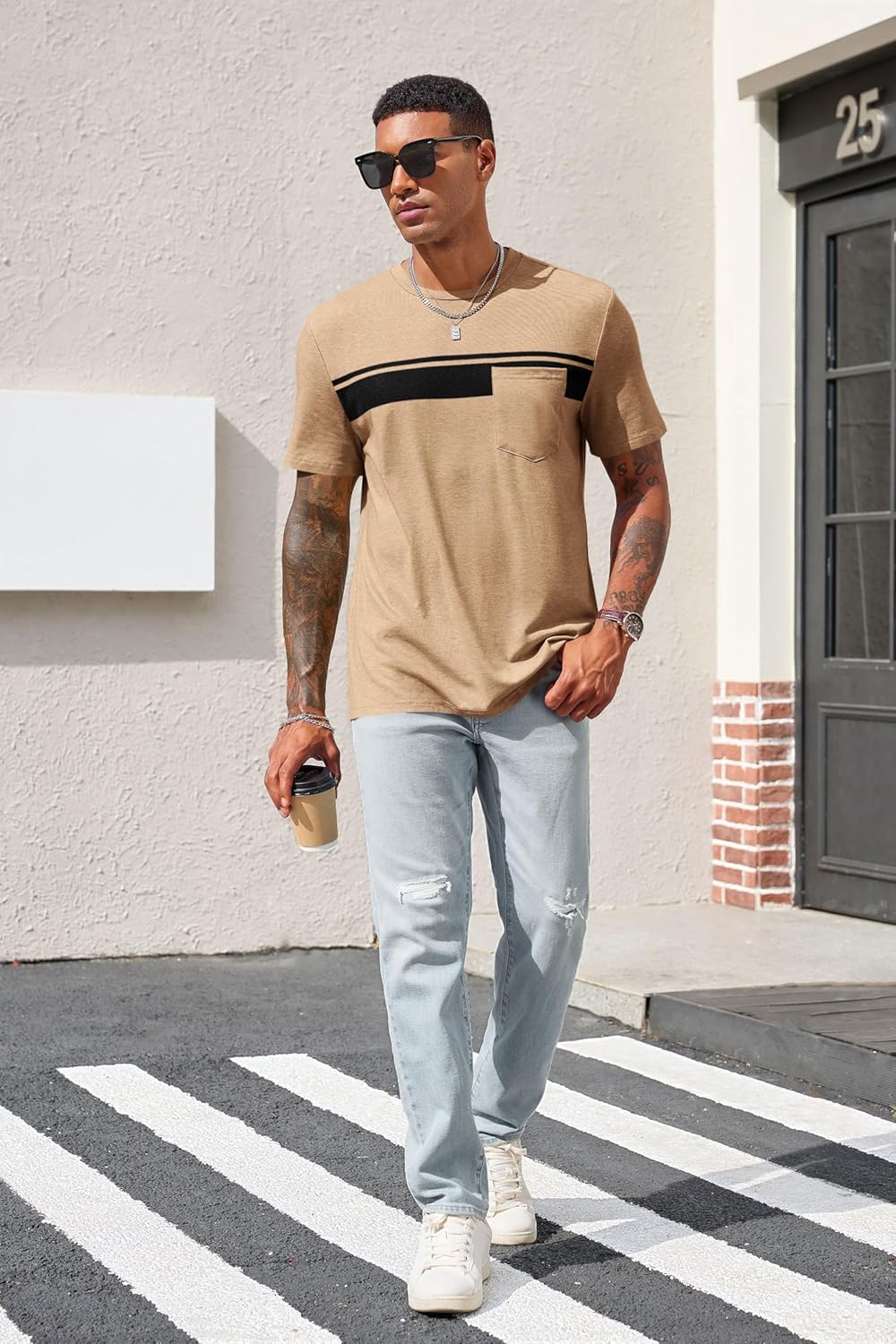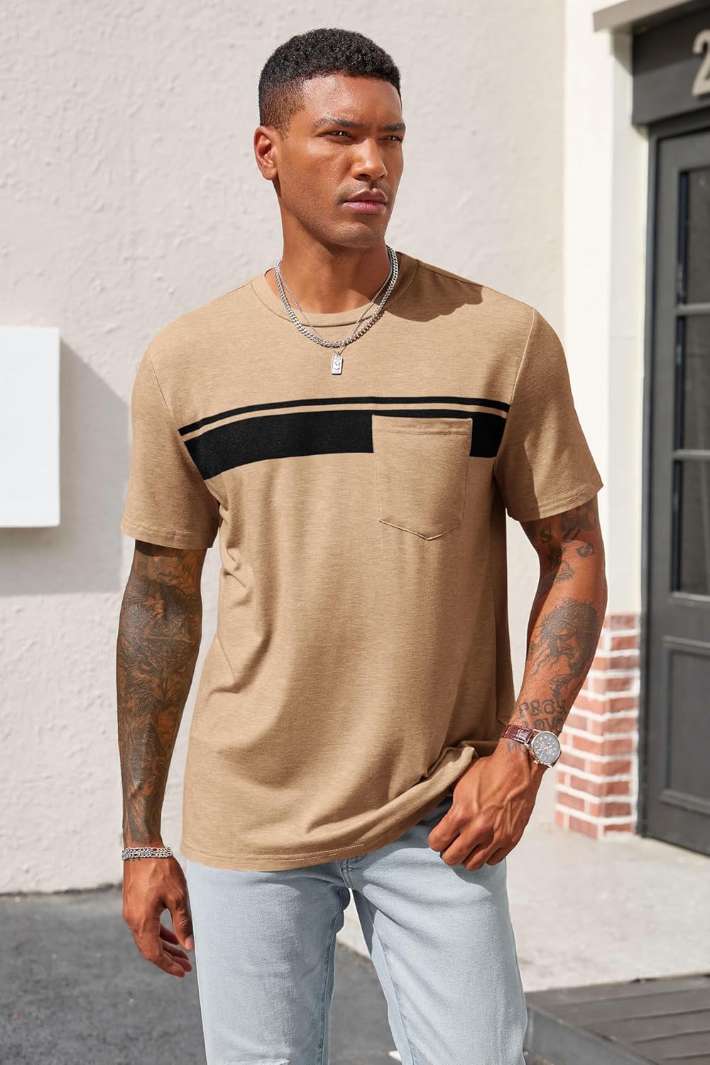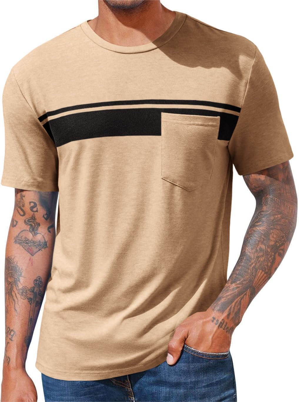 Runcati Men’s Casual T-Shirt Short Sleeve Regular Fit Crewneck Tee Summer Graphic Tops with Pocket/ Mens T-Shirt