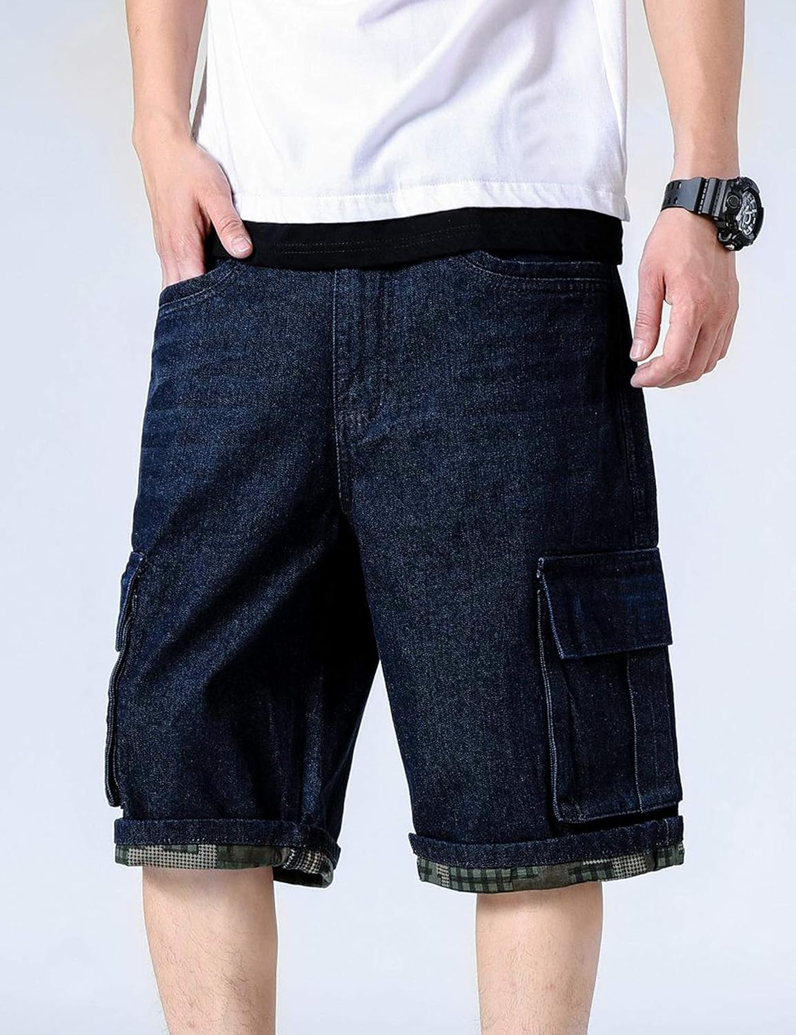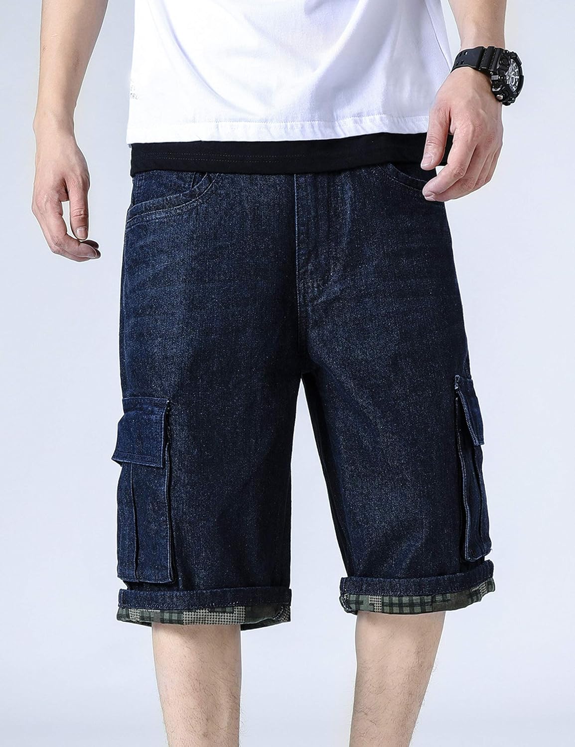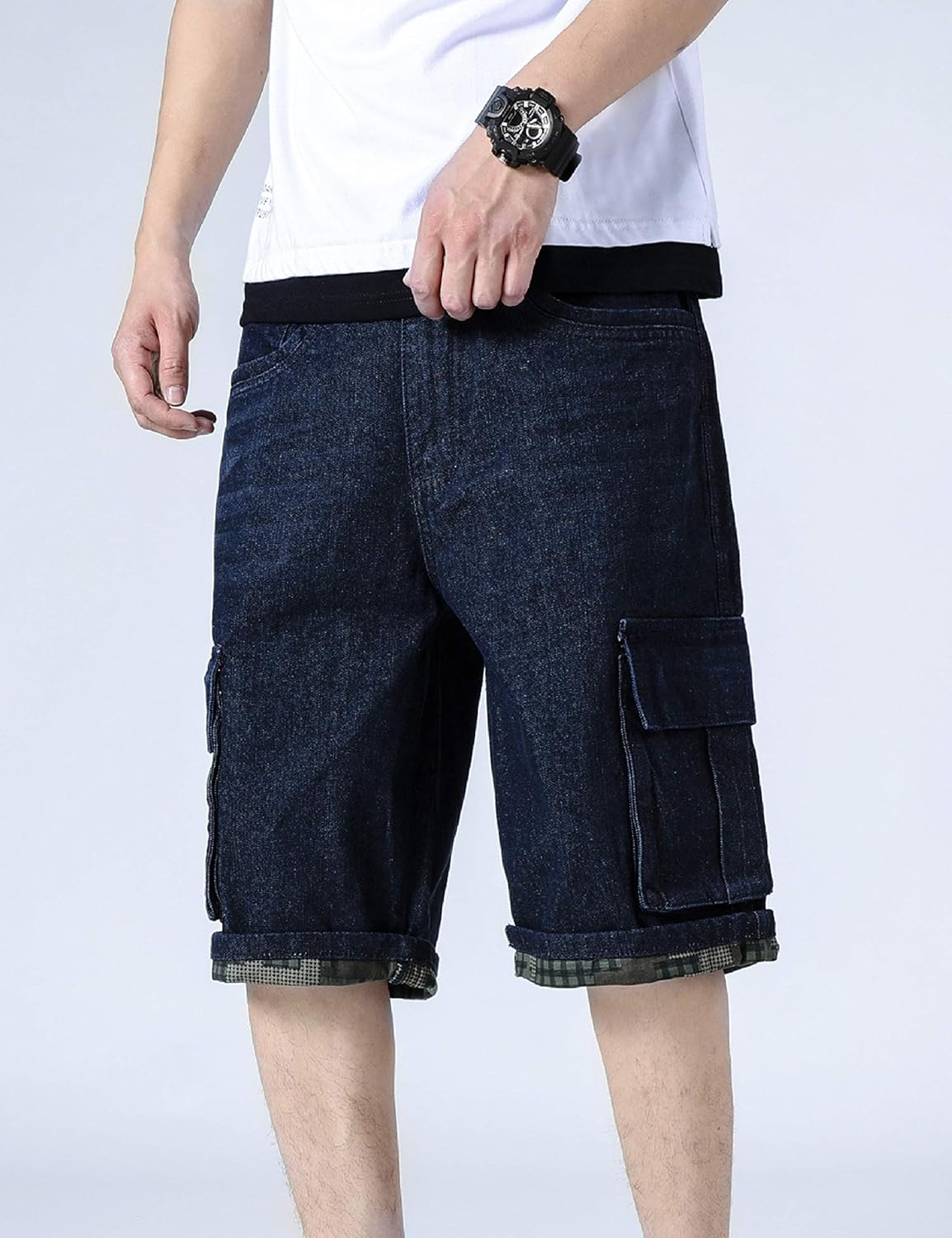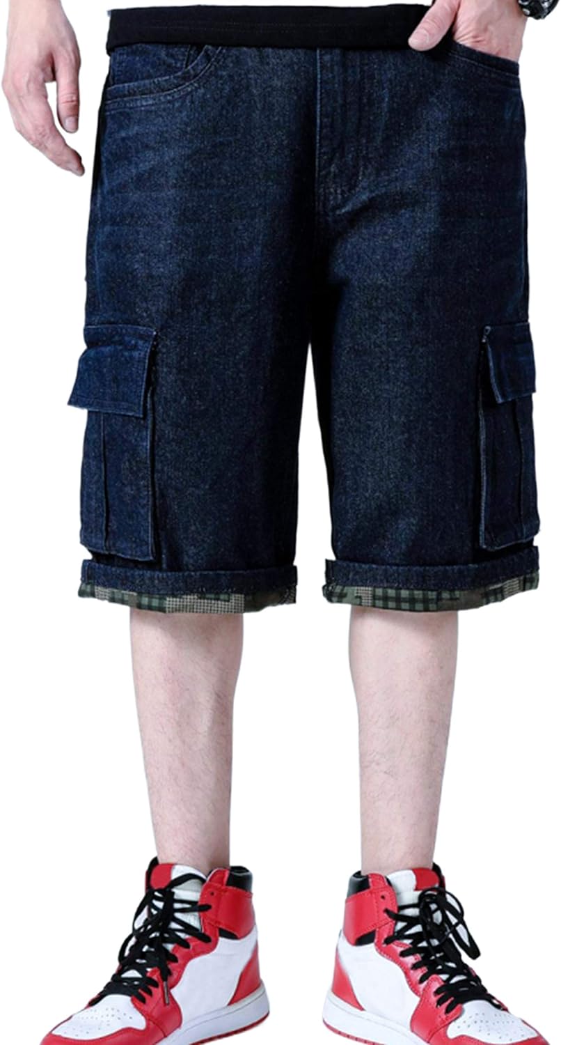 Yeokou Men’s Loose Hip Hop Cropped Jeans Work Denim Shorts with Cargo Pockets/ Jeans